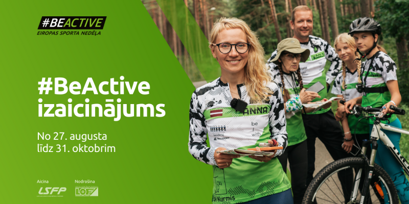 Jau šajā nedēļas nogalē – 27. augustā – Eiropas Sporta nedēļas ietvaros 20 Latvijas pilsētās vai to apkārtnē tiks atklāti kopumā 430 orientēšanās kontrolpunkti un sākts #BeActive izaicinājums. Ikviens iedzīvotājs sev izdevīgā laikā un vietā aicināts doties pastaigā, skrējienā vai braukt ar velosipēdu, meklējot kontrolpunktus un pavadot laiku aktīvā atpūtā, vienlaikus rūpējoties arī par savu veselību. Izaicinājuma noslēgumā dalībniekiem būs iespēja piedalīties izlozē par balvām, ja līdz oktobra beigām būs veiktas vismaz 5 distances, atzīmējoties ne mazāk kā 7 kontrolpunktos katrā (vairāk informācijas – izaicinājuma nolikumā).