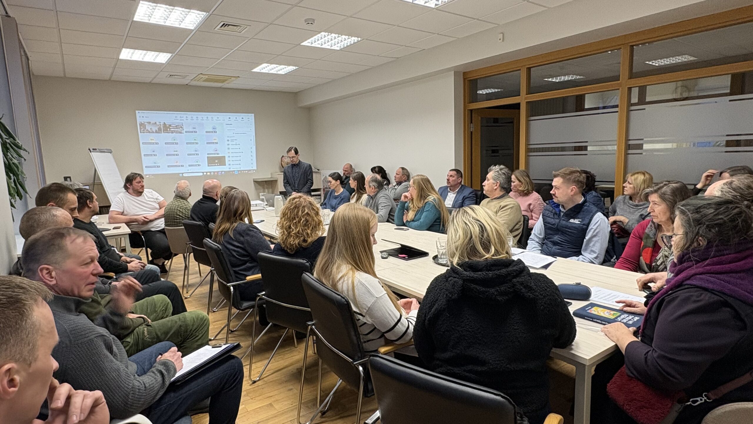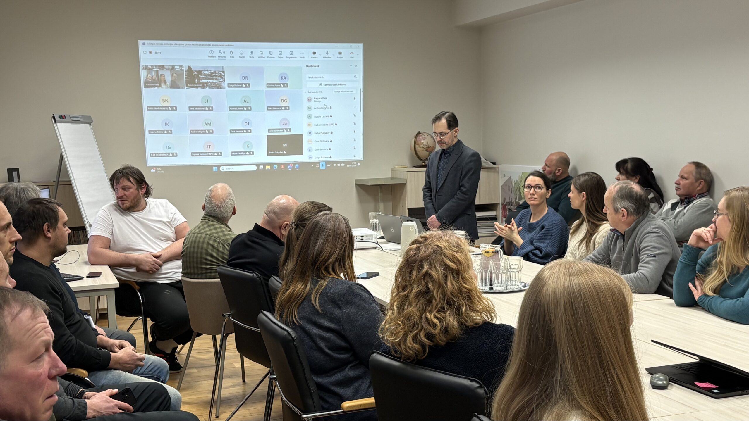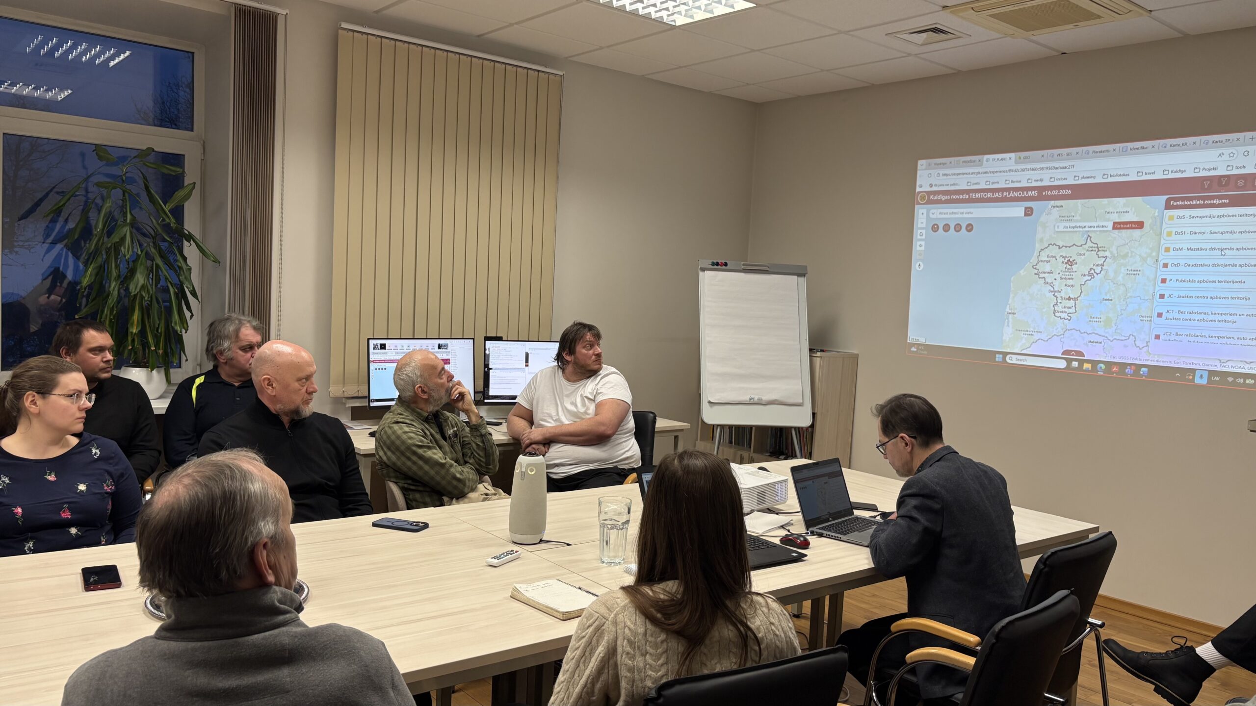 Pirmdien, 16. februārī, Kuldīgas novada pašvaldības Attīstības nodaļas telpās pulcējās kupls skaits interesentu, lai kopīgi apspriestu novada teritorijas plānojuma 1. redakciju. Klātienē sanāksmē piedalījās 31 dalībnieks, savukārt attālināti pieslēdzās vēl 20 interesenti – iedzīvotāji, uzņēmēji, kā arī attīstītāju pārstāvji.
