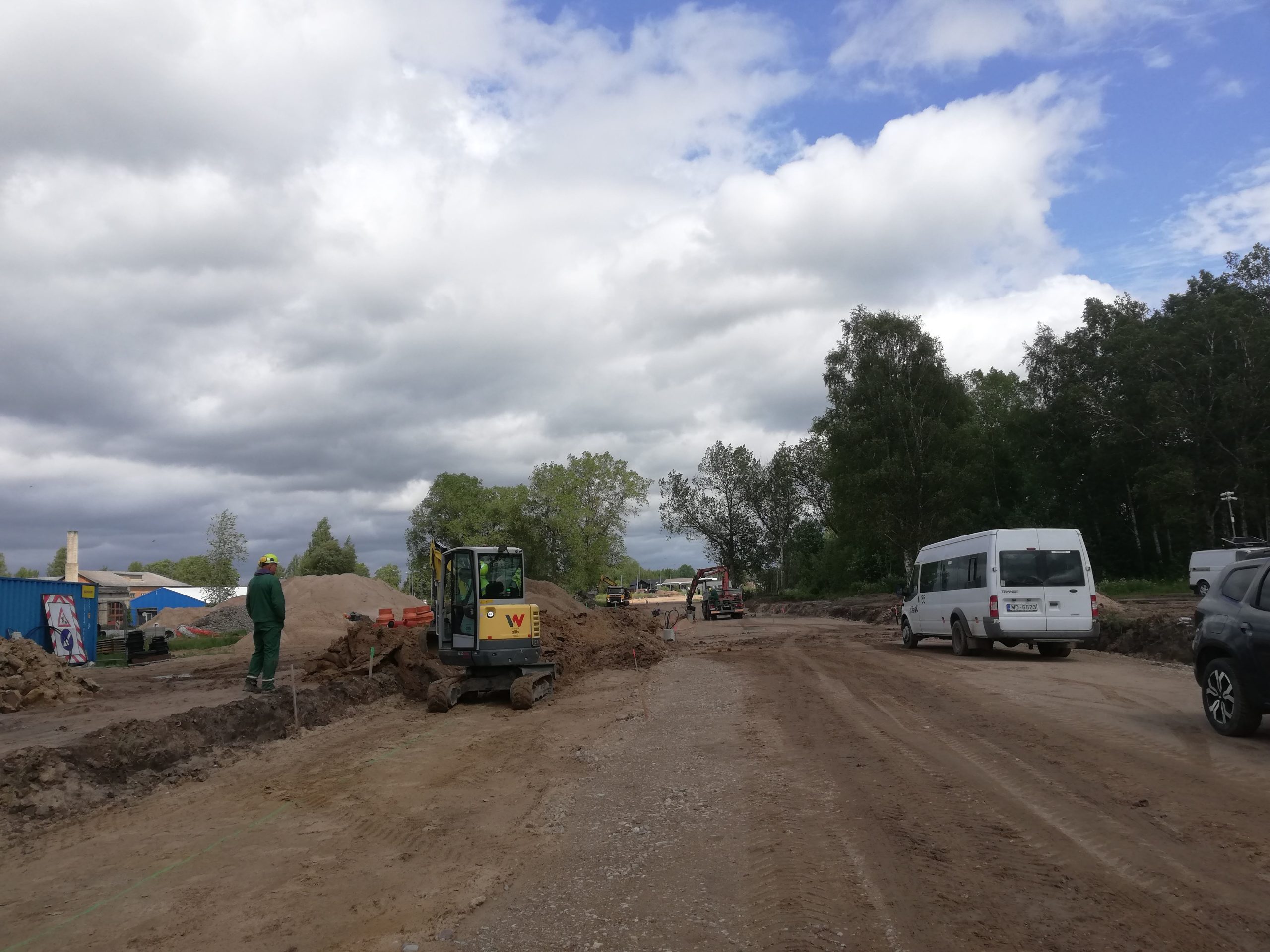 Teritorijā notiek aktīvi būvdarbi - tiek turpināta sadzīves kanalizācijas tīklu ierīkošana (izbūvēts līdz akai K1-13) un ūdensvada izbūve (izbūvēts līdz akai U1-1). Izbūvētajam ūdensvada posmam veikta hidrauliskā pārbaude.