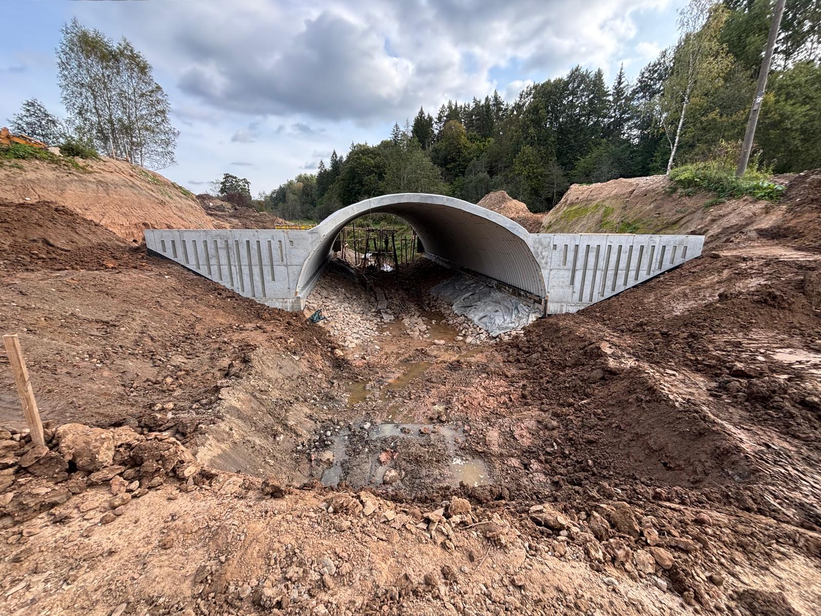 01.10.2025. caurtekas spārnsienu betonešana un uzbēruma veidošana ap caurtekas arku.