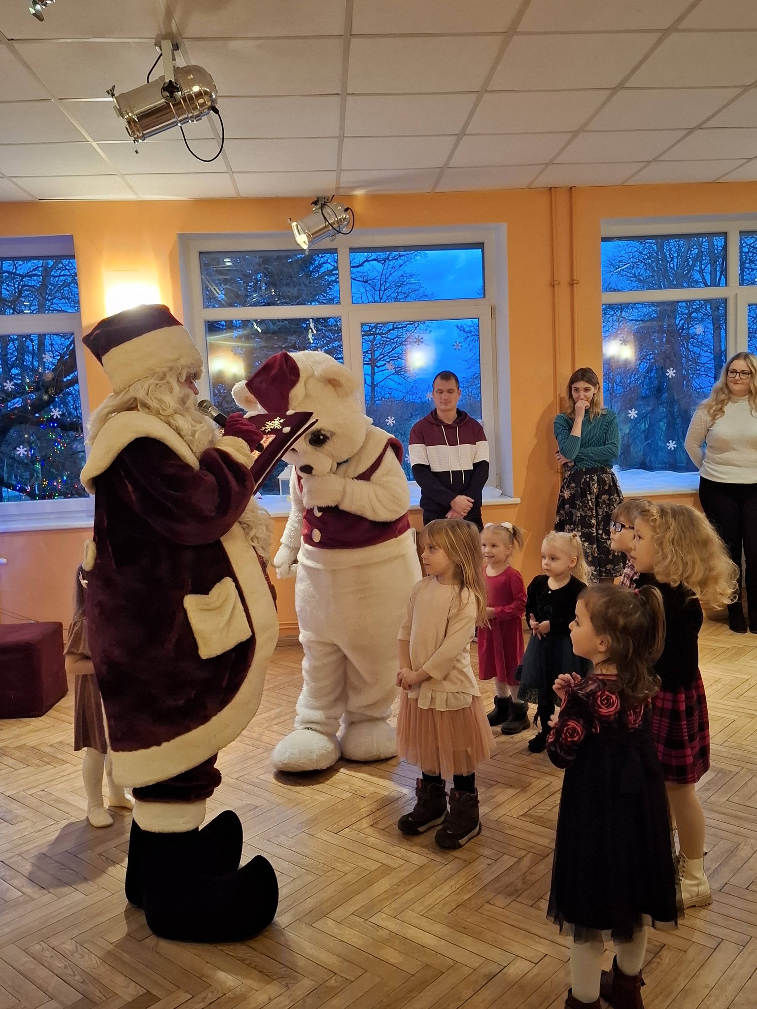 27. decembrī Deksnes pasākumu zālē valdīja īsta svētku noskaņa – pie Padures bērniem viesojās Ziemassvētku vecītis kopā ar lielo Balto lāci!